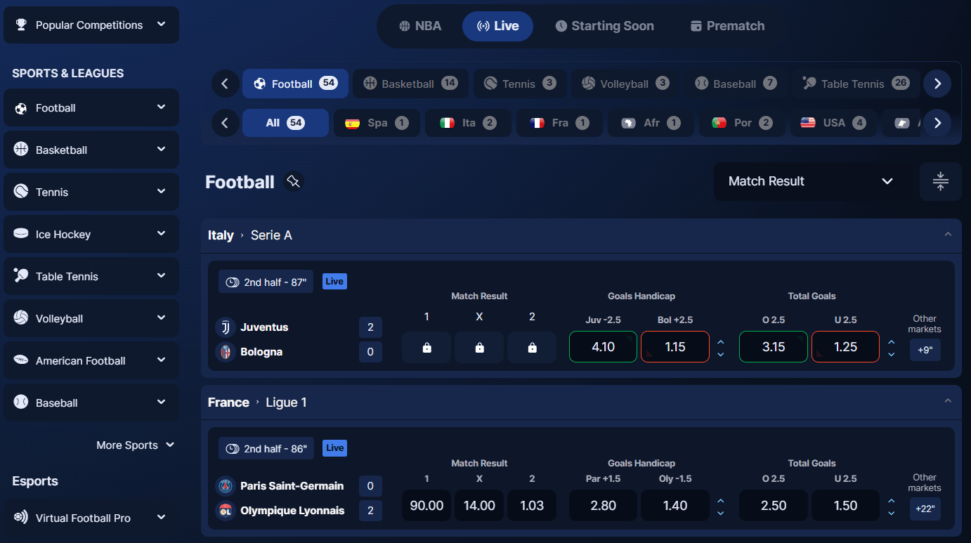 Football is one of the main attractions because it suits different betting styles. You can place a bet before kick-off, or wait until the match is live and react as the odds change. That flexibility also carries across the wider sportsbook, where some events are better suited to pre-match betting and others feel more exciting in play.